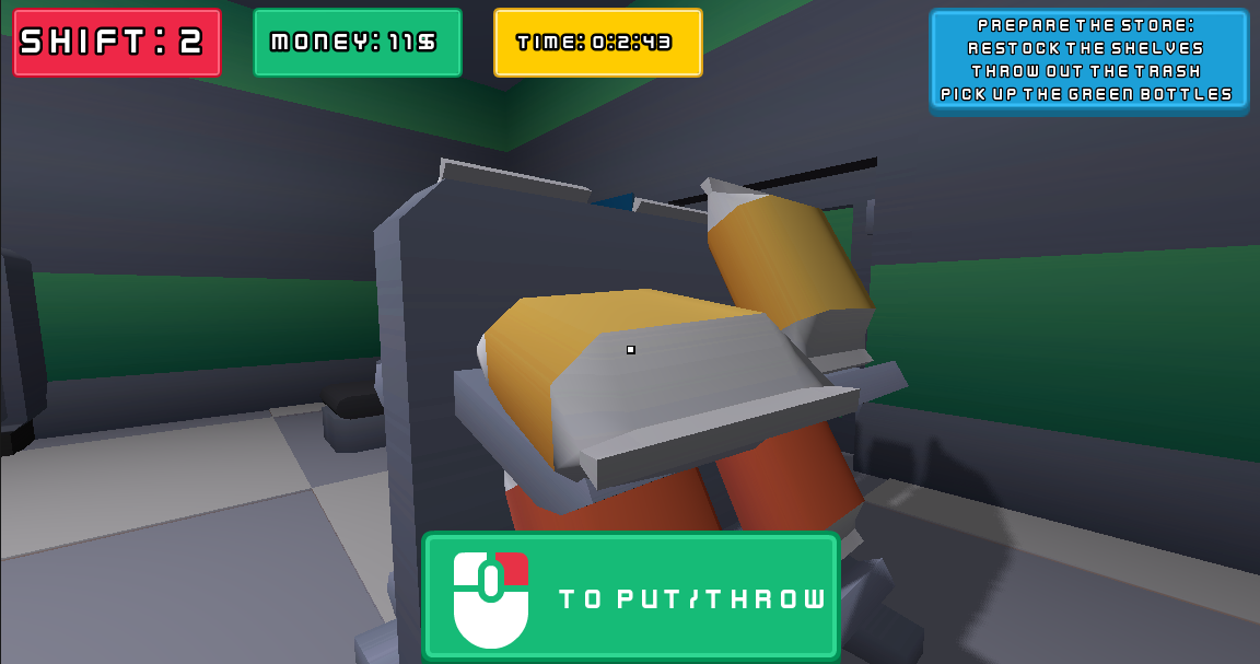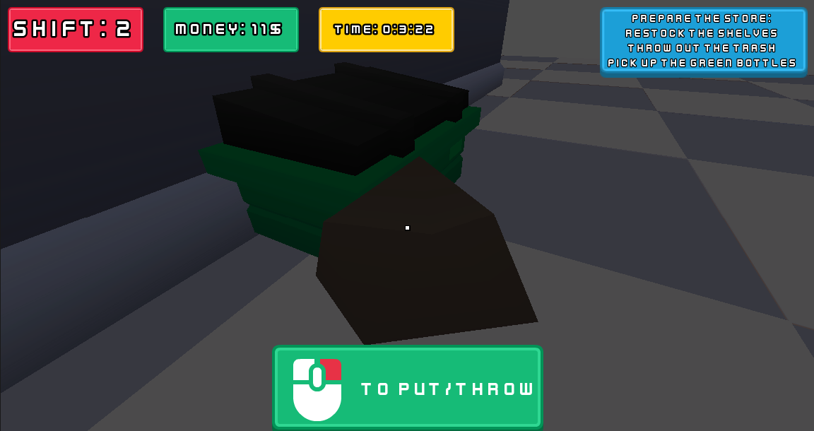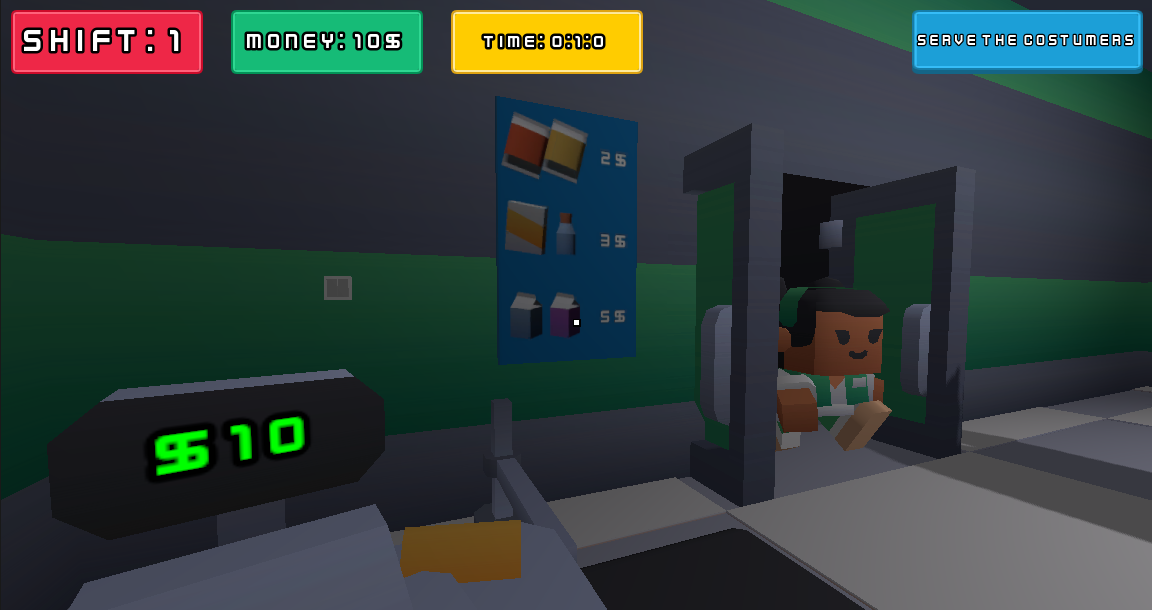 Serve customers, restock shelves, clean up the mess, and try to survive 10 shifts while keeping your profits high.